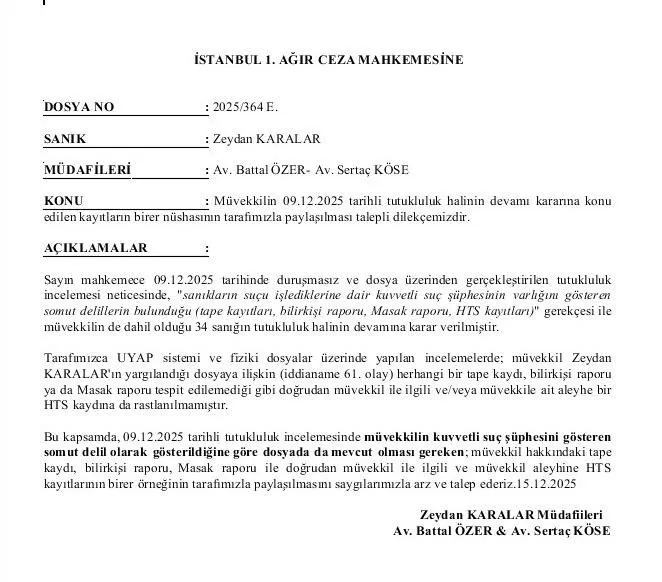 Zeydan Karalar, sosyal medya hesabından yaptığı paylaşımında mahkemeye itiraz dilekçesi ile şu ifadeleri paylaştı: