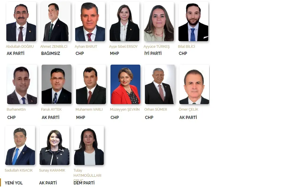 Ak Parti: Abdullah Doğru, Ahmet Zembilci, Faruk Aytek, Ömer Çelik, Sunay Karamık.