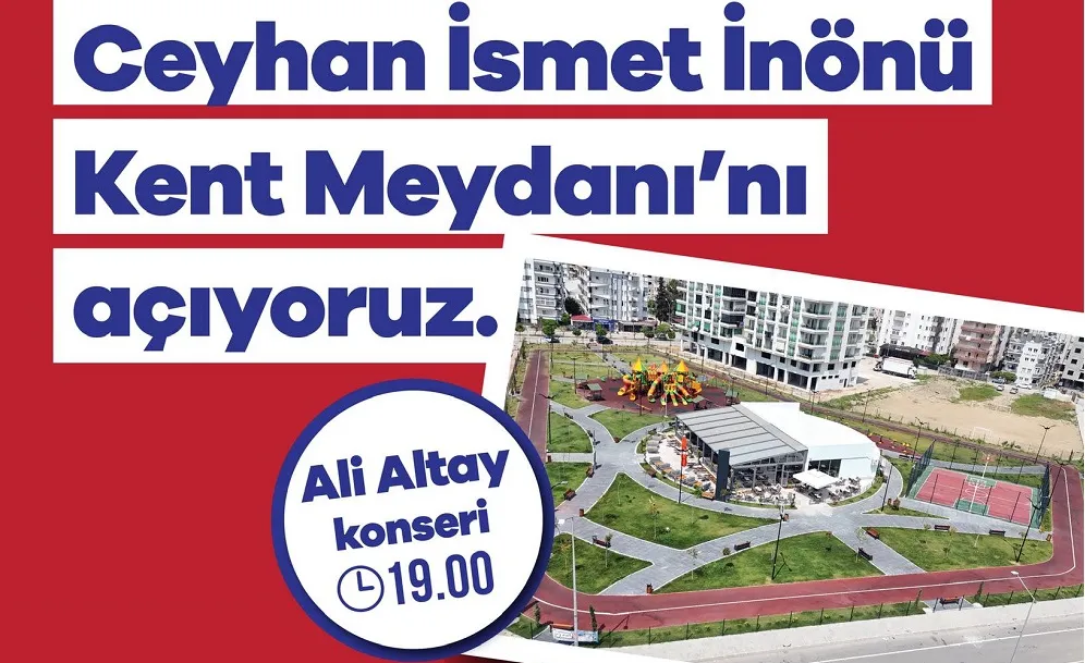 ABB Başkanı Zeydan Karalar, Ceyhan İnönü Meydanı açılışını sosyal medya hesabından, “Ceyhan Belediyesi ile birlikte yapımını tamamladığımız Ceyhan İsmet İnönü Kent Meydanı'nı, 2. Cumhurbaşkanımız İsmet İnönü’nün torunu Ayşe Gülsün Bilgehan'ın katılımı ve Ali Altay konseri ile açıyoruz.