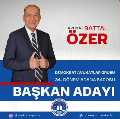 Adana Barosu’nun Ekim ayında yapılması beklenen 34. Olağan Genel kurulu için Av. Battal Özer, Demokrat Avukatlar Grubundan adaylığını açıkladı.