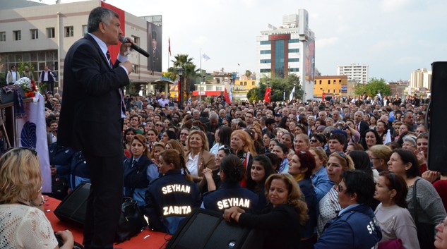 Daha sonra Seyhan Kültür Merkezi önünde toplanan binlerce vatandaşa hitap eden Zeydan Karalar, temizlik işçilerinin maaşlarını artıracağını ve çalışan, dedikodu üretmeyen hiçbir insanı yerinden etmeyeceğinin sözünü verdi.