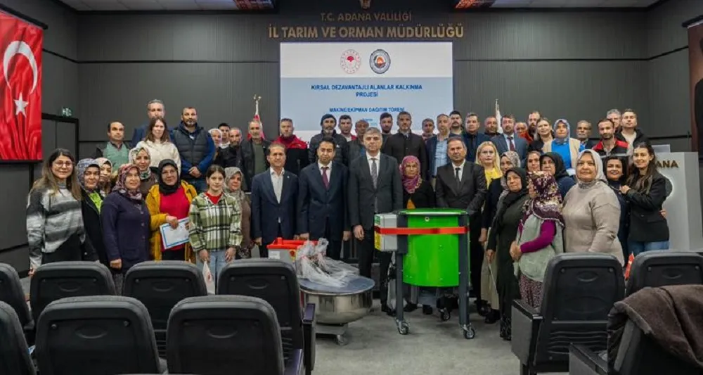 İl Tarım ve Orman Müdürlüğü’nden verilen bilgiye göre, Proje kapsamında 32 kadın ve erkek yararlanıcıya, hamur yoğurma makinesi ile ceviz soyma makinesi %100 devlet desteğiyle hibe edildi. Makine teslim programı, Adana İl Tarım ve Orman Müdürlüğü Toplantı Salonu'nda gerçekleştirildi. Programa Adana Vali Yardımcısı Sayın Abdullah Şahin, Yüreğir Ziraat Odası Başkanı Mehmet Akın Doğan, İl Tarım ve Orman Müdürü Atilla Bayazıt, ilçe müdürleri ve yararlanıcılar katıldı.