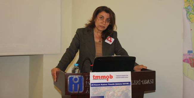 TMMOB Adana İKK Kadın Komisyonu Başkanı Ayten Dolançay,” Şiddete Karşı Tek Ses Olmaya Devam Edeceğiz.”dedi.