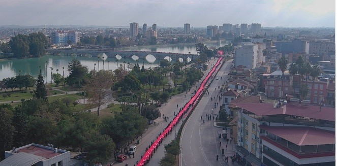 5 Ocak Adana’nın Kurtuluşunun 100. Yılı. Bu özel günde özel etkinlikler düzenlendi. 3628 metre uzunluğundaki dev bayrak Adana’da aralarında Vali Süleyman Elban, Büyülkşehir Belediye Başkanı Zeydan Karalar ile milletvekilleri, ilçe belediye başkanlarının da bulunduğu 6 bin 500 kişi tarafından muhteşem görüntü oluşturdu