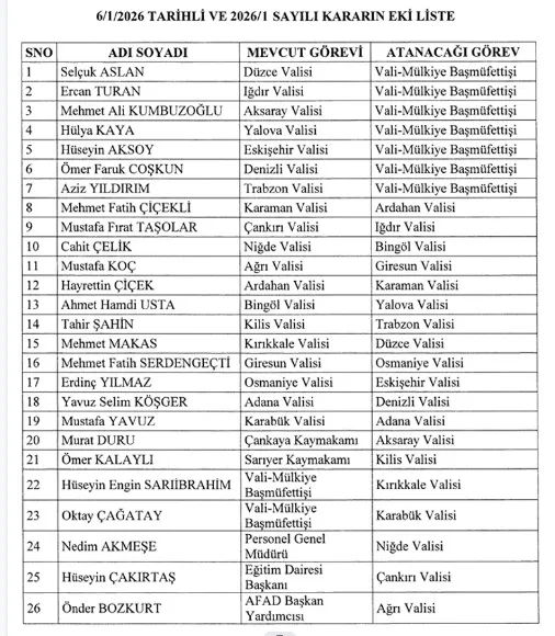Erdoğan’ın imzaladığı kararnameye gore 7 vali merkeze alındı, aralarında Adana’nın da olduğu 19 valiri değişti.