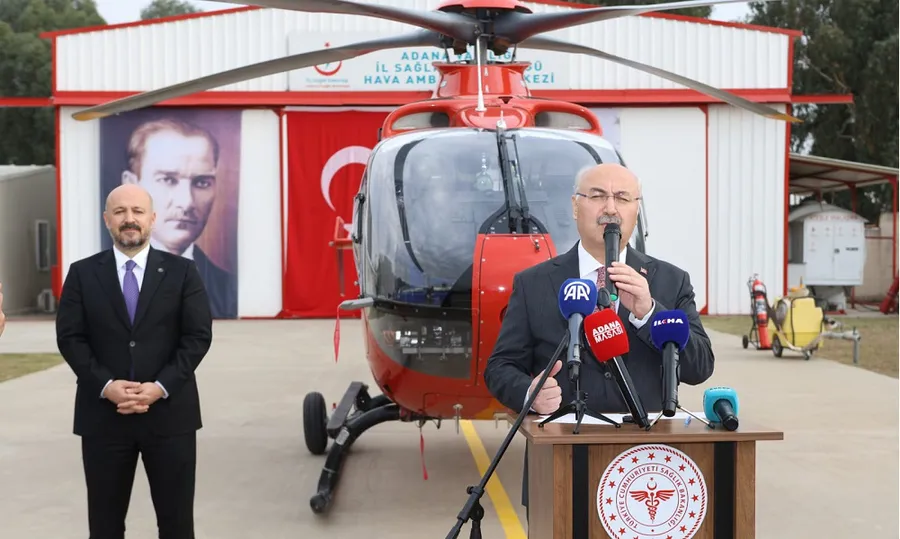 Adana İl Sağlık Müdürlüğü Ambulans Helikopter Pistindeki törene Vali Yavuz Selim Köşger, Adana Milletvekili Abdullah Doğru ve Faruk Aytek, İl Sağlık Müdürü Dr. Halil Nacar protokol katıldı.