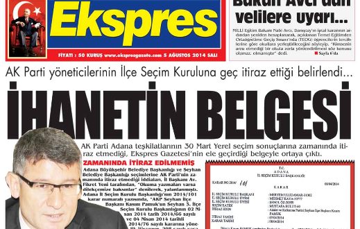 “AK Parti Adana teşkilatlarının 30 Mart Yerel seçim sonuçlarına zamanında itiraz etmediği, Ekspres Gazetesi'nin ele geçirdiği belgeyle ortaya çıktı.