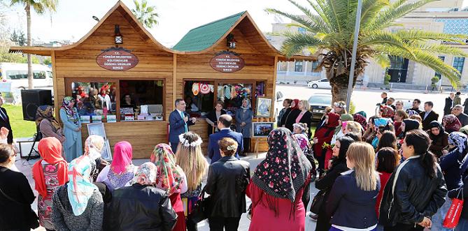 Yeni yuva kuracak olan genç kızlarımız çeyizlerini Kültür Evlerimizde hazırlıyorlar. Ailelerini mali külfetten kurtarıyorlar. Bunun dışında, el emeği göz nuru ürünler üretiyorlar. Bizim amacımız vatandaşlarımızın ürettikleri ürünleri en iyi şekilde değerlendirmeleri sağlamaktır. Bunun için bu satış büfelerini vatandaşımızın hizmetine sunarak, aile ekonomilerine katkı sağlamalarına yardımcı oluyoruz.' dedi.