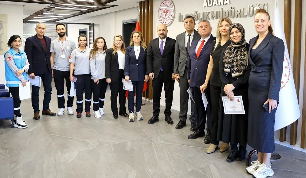 Adana İl Sağlık Müdürü Dr. Halil Nacar, Seyhan Devlet Hastanesi Evde Sağlık ekibine başarılı çalışmaları nedeniyle takdir belgesi verdi