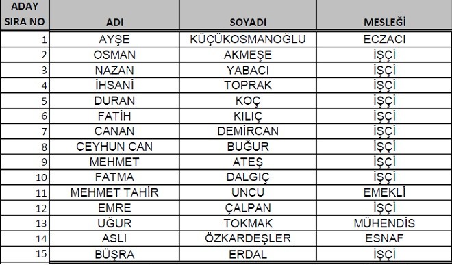 HKP’nin Milletvekili adayları şu isimlerden oluştu: