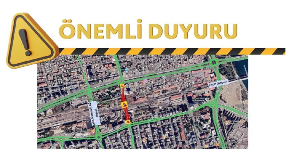 “TCDD tarafından yürütülen MAOG Yüksek Standartlı Demiryolu Hattı Projesi kapsamında, Kasım Gülek Köprüsü yıkım çalışmaları nedeniyle, 8 Şubat 2026 - 15 Ekim 2026 tarihleri arasında Gazipaşa Bulvarı - Kasım Gülek Köprüsü araç trafiğine kapalı olacaktır. Sürücülerin alternatif güzergahları kullanmaları rica olunur.”