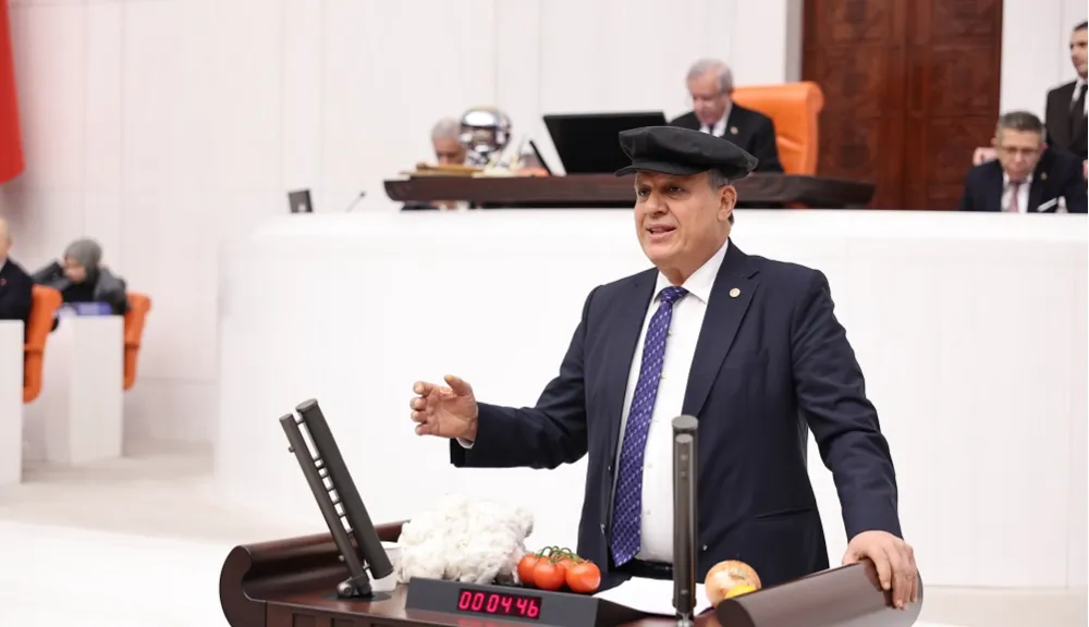 "Buraya manav açmaya gelmedik. Bu yıl çiftçi ne ektiyse zarar etti. Örneğin, şu pamuk: Kilosu 30 liraya mal oldu, 40 liraya satılması gerekirken 25 liraya satıldı. Yine, şu soğan: 8-10 liraya mal oldu, 4 liraya satıldı, sonradan da tarlada çürüdü. Domates, aynı şekilde çürüdü. Şu erkenci mandalinanın 8 lira, 10 lira olması gerekirken 1 liraya, 2 liraya şu anda da alıcısı yok. Değerli arkadaşlar, aynısı karpuz için, patates için de geçerli. Bu gördüğünüz şapka var ya, bu gördüğünüz şapka çiftçimizin sembolüdür, simgesidir. Çiftçi, kazanç sağladığı zaman bu şapkayı her zaman havaya fırlattı ama AKP iktidarında üretici hiçbir zaman bu şapkayı havaya atamadı, âdeta hep böyle yere fırlattı."