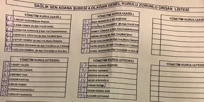 Sağlık Sen Adana Şubesi’nin olağan genel kurulu yapıldı. 2 adayın çekiştiği seçimlerde 12 yıldan bu yana Sağlık Sen Adana Şube Başkanlığını yapan Recep Kurum seçimi kaybetti. Başkanlığa Adana İl Sağlık Müdür yardımcısı olan Bekir Nennioğlu seçildi.
