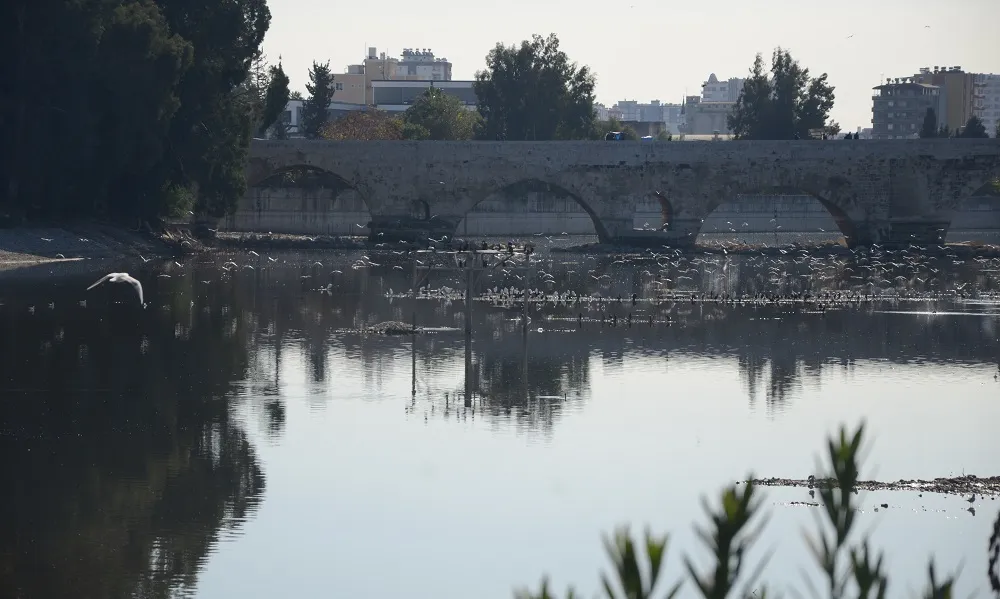 Adana son yılların en kurak yılını yaşadı. Göletler kurudu. Seyhan Baraj Gölü ve Nehri de nasibini aldı. Yeni yıla gireceğimiz bu günlerde Seyhan Nehri ve Taşköprü ile martılar.(Fotoğraf: İsmail BAŞKAN)
