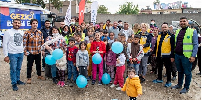 Belediye Başkanı Akay’ın da katıldığı Zeytinli Mahallesindeki ilk etkinlikte Gezici Bilgi Evi Otobüsü ile çadırlarda yaşayan geçici tarım işçilerinin çocuklarına 2 binin üzerinde kitap ve internet bağlantısı hizmeti sunuldu. Kitap okuma etkinliği ile çocuklar okumaya teşvik edilirken, çocukların mutluluğu armağan edilen oyuncaklar ve balonlarla arttı.