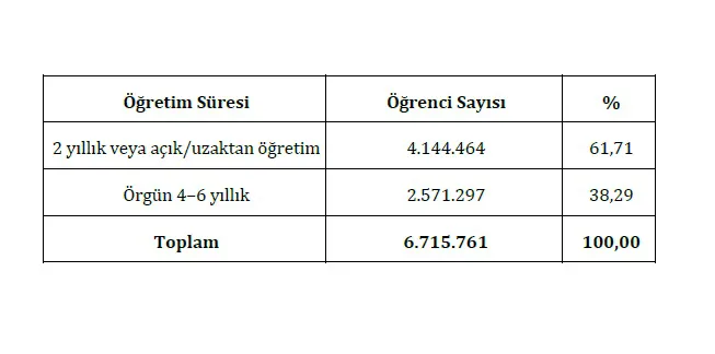 ÖĞRENCİLERİN YÜZDE 62’Sİ ZATEN İKİ YILLIK YA DA AÇIK/UZAKTAN ÖĞRETİMDE