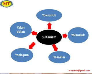 Yeni sultanizm. Gerçek siyasal karar alma ve uygulamayı teki kişi yaparken, ülkeyi tek kişi yönetirken, çağdaş/modern yapıların varlığının vitrinde sergilendiği bir yönetim şeklidir.
