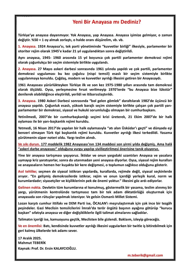 YENİ BİR ANAYASA MI DEDİNİZ?